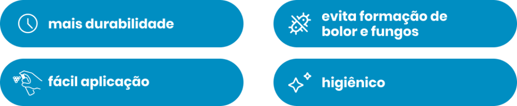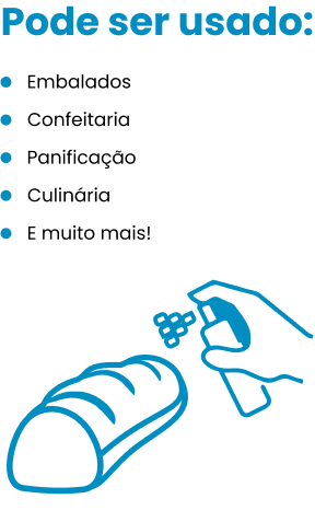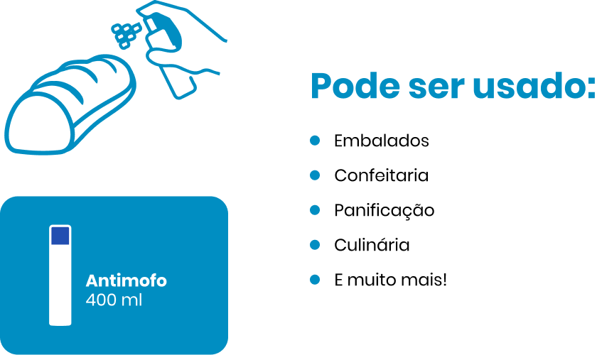 Com fácil aplicação, tem por objetivo inibir o processo natural de formação e proliferação de fungos, bolor e roupe; assegurando mais tempo de prateleira e maior vida útil para os produtos.